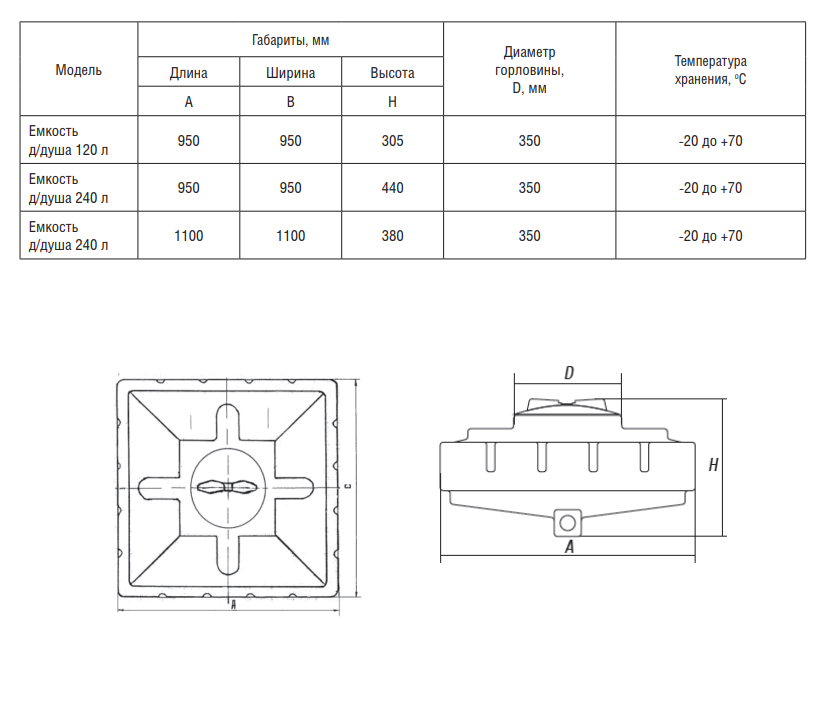 Баки для душа объем 120 и 240 литров предназначены для создания душевых кабин и летнего душа на загородных участках.