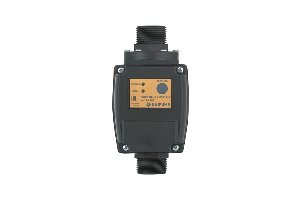 Блок «АКВАРОБОТ ТУРБИ М3» предназначен для управления насосом по потоку и по двум порогам давления. Пороги давления Рмин и Рмакс в «АКВАРОБОТ ТУРБИ М3» определяются типом датчика давления.