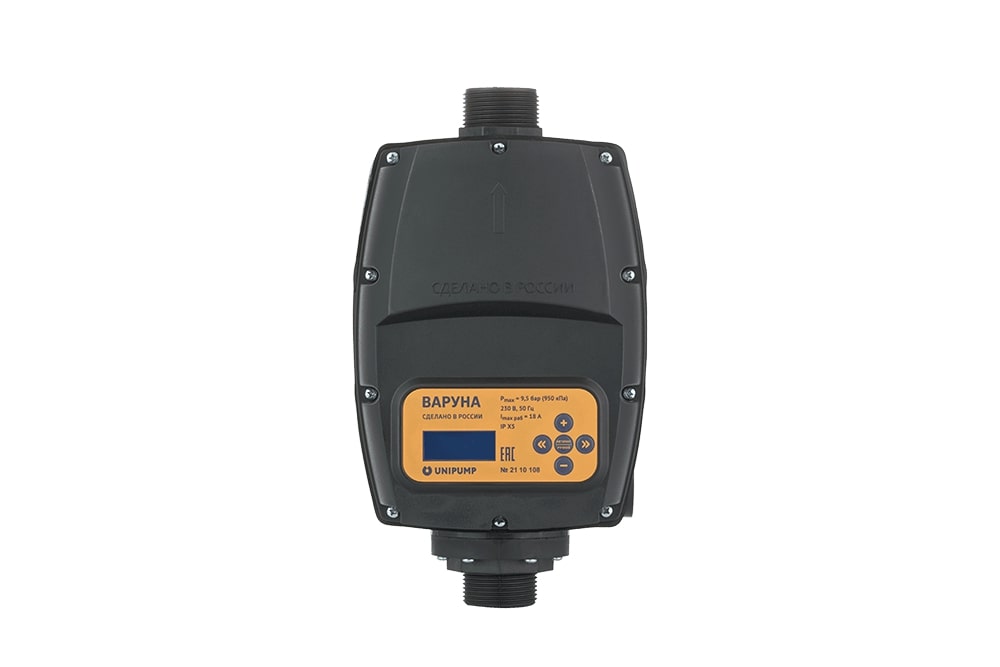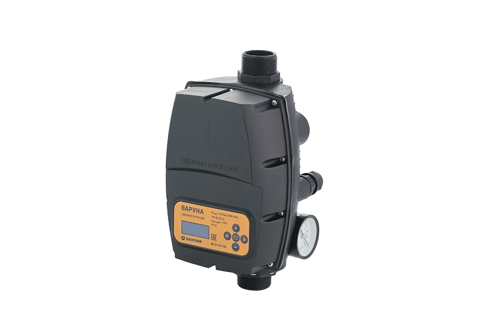 Частотный преобразователь UNIPUMP ВАРУНА — электронный блок, автоматически управляющий функциями остановки и пуска двигателя однофазного насоса мощностью до 2,2 кВт, при максимальной номинальной частоте до 50 Гц. Устройство модулирует частоту (Гц) входного тока двигателя насоса, изменяя скорость его вращения, в зависимости от потребности воды в системе. При этом давление в системе поддерживается на одном, заданном пользователем уровне, а мощность, потребляемая двигателем насоса, пропорциональна величине потока расходуемой воды, что позволяет существенно экономить электроэнергию при постоянно изменяющемся водопотреблении в течение суток.