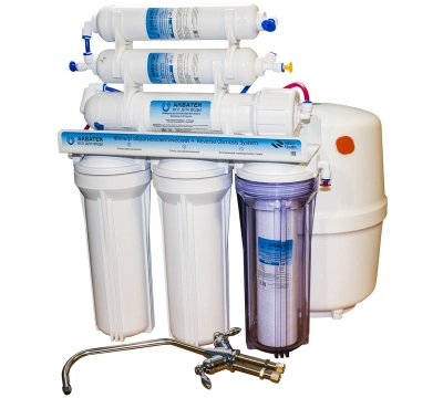 "Многоступенчатая система подготовки питьевой воды с использованием технологии обратного осмоса. Накопительный бак фильтрованной воды полезной емкостью 12 л. В комплекте кран для врезки в мойку. Вода проходит через префильтры, защищающие обратноосмотическую мембрану от механических и химических нагрузок, продавливается через полупроницаемую мембрану и поступает в специальный накопительный бак. Отработанная вода через постфильтр поступает к потребителю. Постфильтр служит дополнительной гарантией чистоты полученной воды. Рабочее давление - 2,8 – 6,0 бар. Диапазон рабочих температур +2…+40°С.