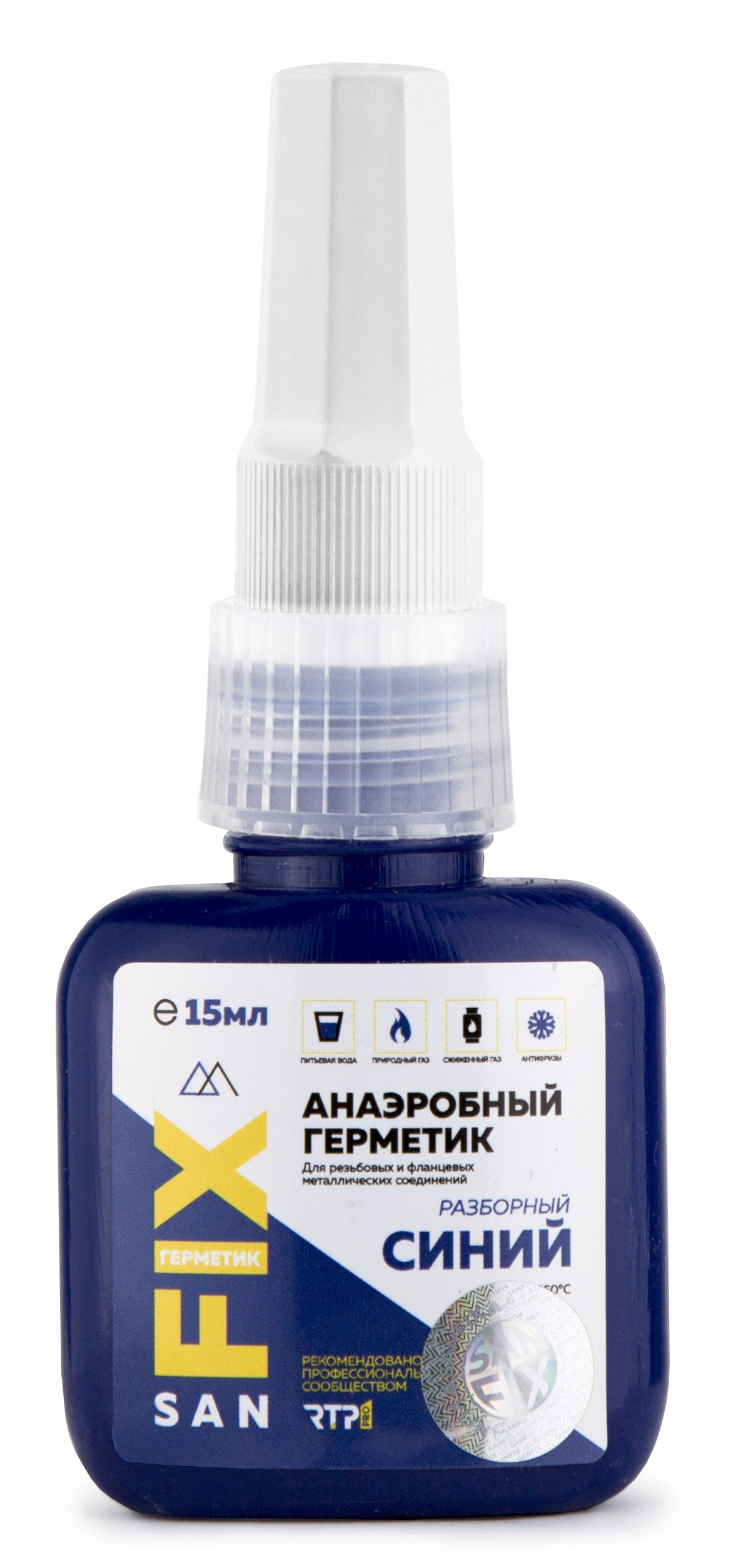 Анаэробный герметик SANFIX – жидкое полимерное вещество, применяемое для уплотнения, герметизации металлических резьбовых соединений. Попадая в узкое безвоздушное пространство при соприкосновении с металлом материал полимеризуется (затвердевает), полностью перекрывая собой имеющееся свободное пространство внутри узла.