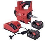Аккумулятор: 2x Li-Ion 18 В 5 А·ч (Milwaukee-совместимые), LED-подсветка, индикатор заряда, гидравлический привод поршня, автовращение головки.