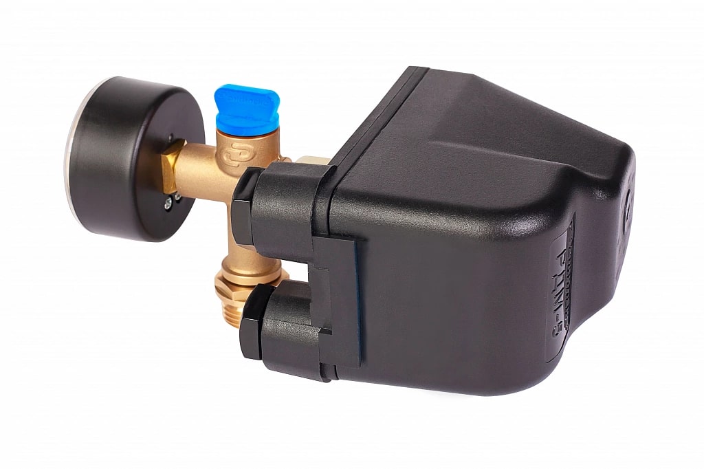 В комплекте идет манометр, который крепится к отдельному входу штуцера и позволяет отслеживать уровень давления в системе в пределах 6 бар.