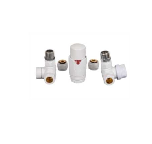 Комплект вентилей Delta mini трехосевой 1/2 правый с термоголовкой М30х1,5 RAL 9016 белый