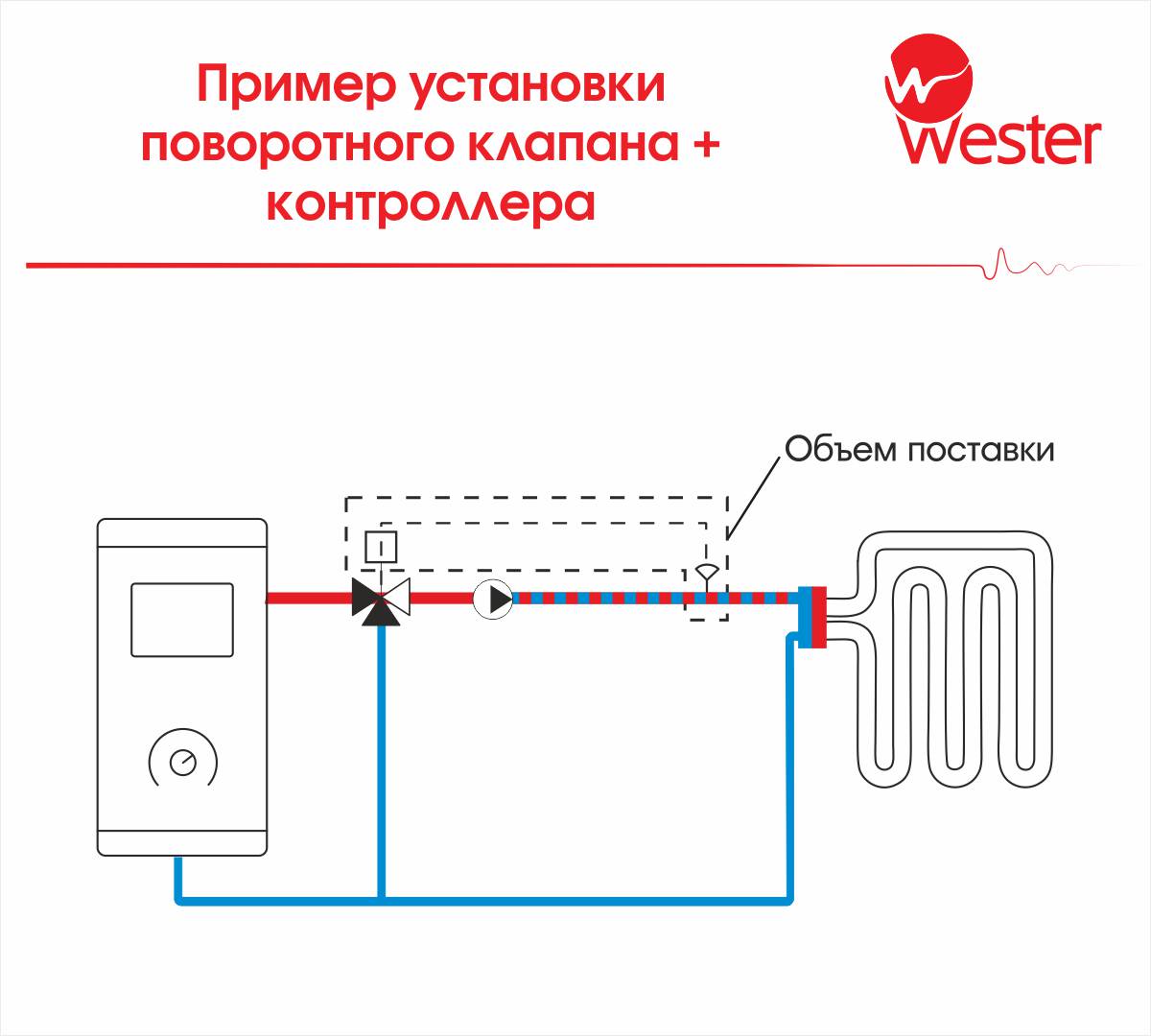 Контроллер-приводы Wester серии WK предлагаются в моноблочном исполнении и предназначены для установки на поворотные клапаны для поддержания установленной температуры жидкости в контурах систем отопления и водоснабжения, путём смешения потоков подающего и обратного трубопроводов.