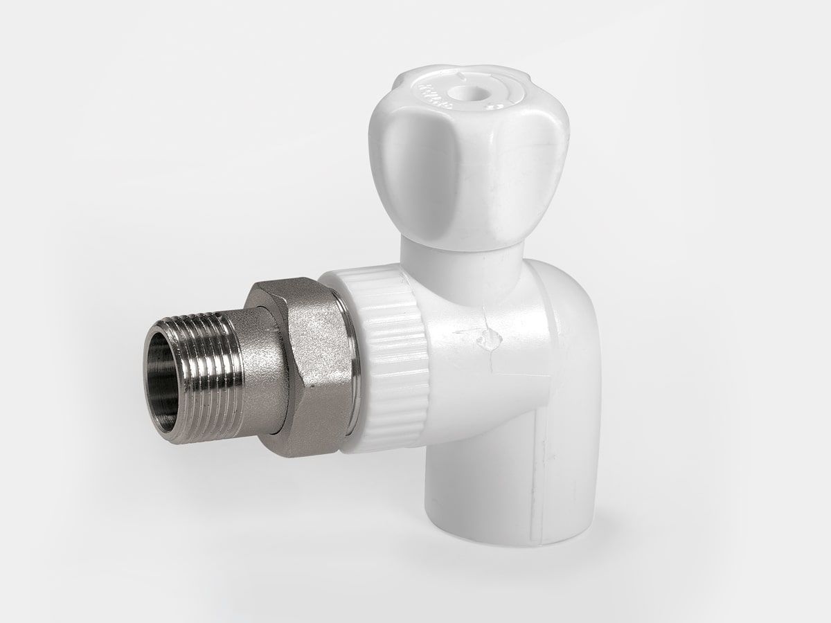 Кран радиаторный угловой 20*1/2" ППР белый Контур