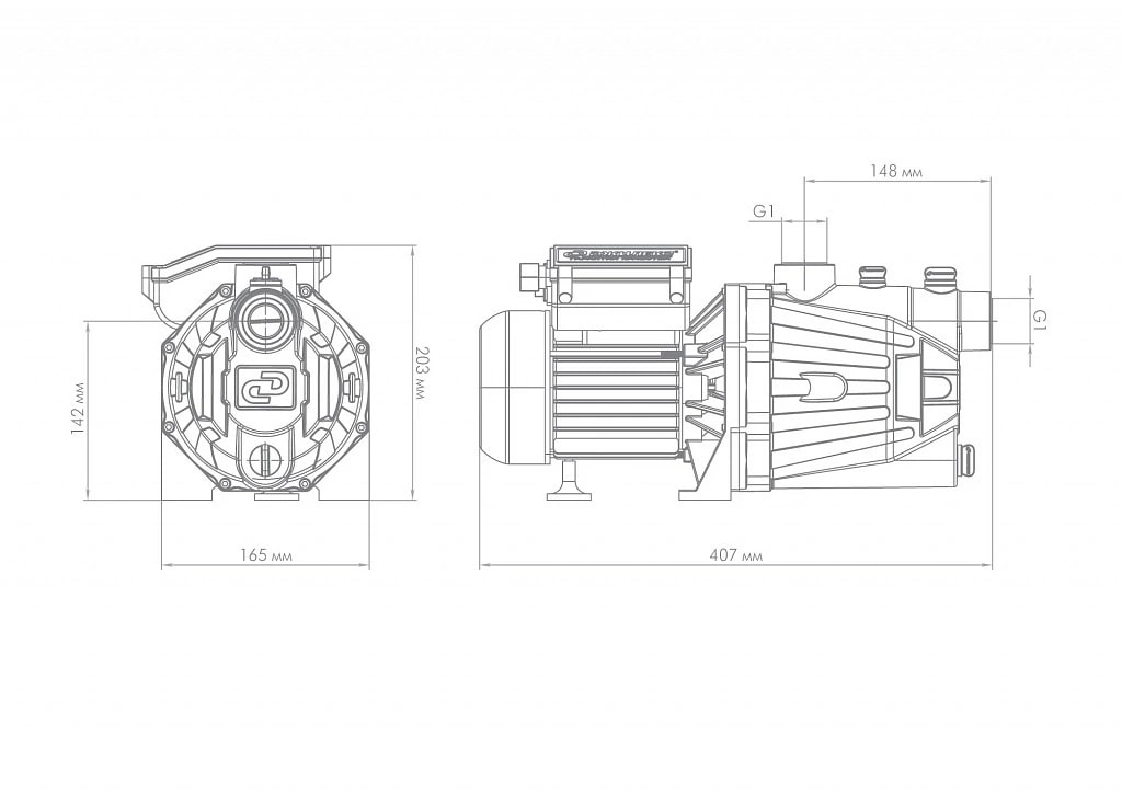 Наличие заливного отверстия и отверстия для выхода воздуха с резьбововыми заглушками позволяет быстро заполнить водой насосную часть и избежать образование воздушных пробок, что облегчает первоначальный запуск насоса. В процессе залива вода сразу попадает в диффузор, корпус и всасывающую магистраль.