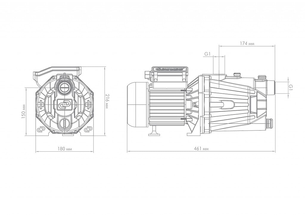 Высокое давление на выходе и хорошие условия всасывания на входе обеспечены, благодаря встроенному внутреннему эжектору с системой труб Вентури.
