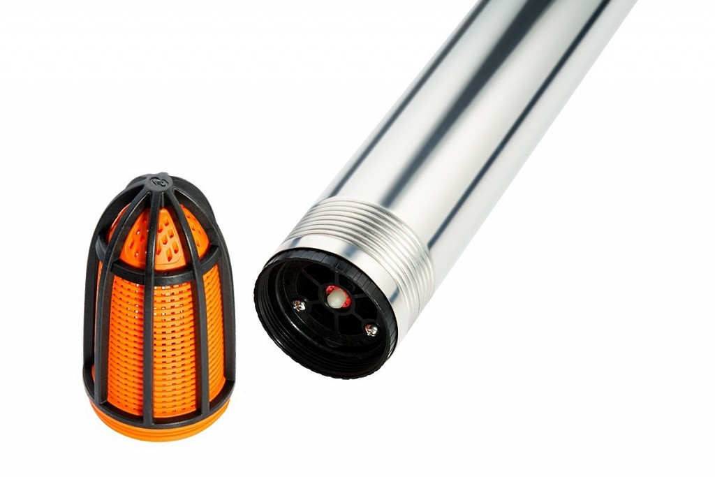 Внешний съёмный фильтр предотвращает попадание грязи и песка. В случае загрязнения достаточно промыть фильтрующую сетку. Фильтр не случайно имеет форму конуса. Такая конструкция значительно облегчает процесс опускания насоса в скважину при «ступенчатом» соединении обсадных труб.