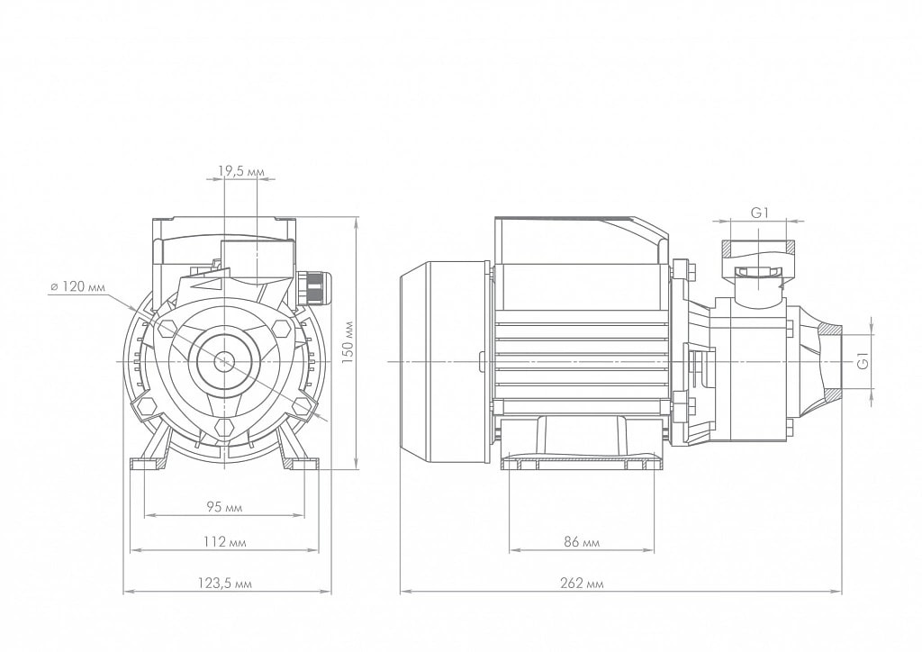 Насос состоит из асинхронного однофазного электродвигателя, чугунного корпуса с всасывающим и нагнетательным патрубками, латунного рабочего колеса, установленного на валу электродвигателя. На корпусе имеется заливное отверстие, закрытое пробкой.