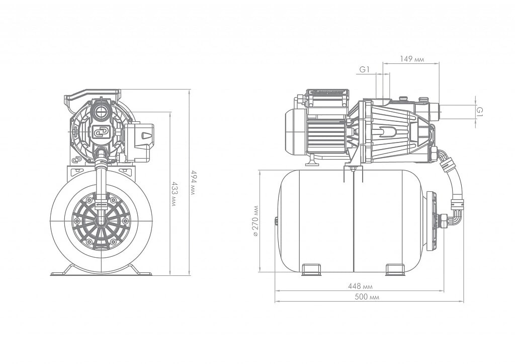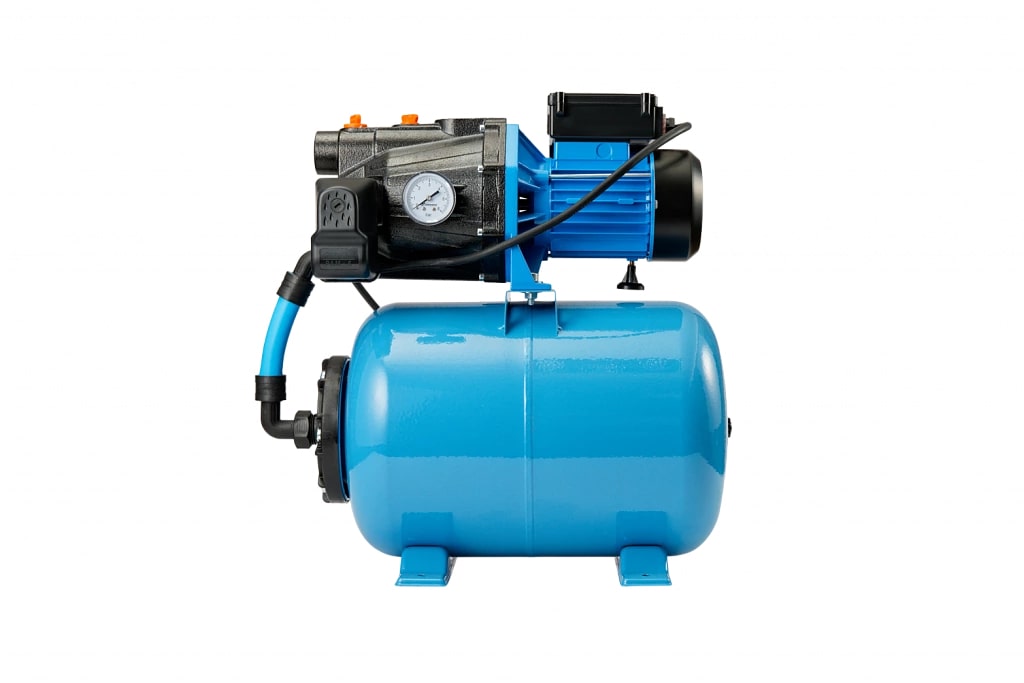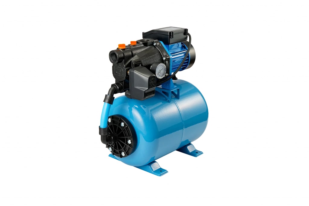 Насосная станция "ДЖАМБО" создана для автоматизированной подачи чистой воды из разных источников, также может быть использована для повышения давления при использовании в качестве источника магистрального водопровода.Область применения.Насосную станцию можно использовать как часть системы автоматического водоснабжения в частном доме. Забор воды может осуществляться из:открытых водоемов;колодцев и скважин;централизованного водопровода.Наличие заливного отверстия и отверстия для выхода воздуха с резьбововыми заглушками позволяет быстро заполнить водой насосную часть и избежать образование воздушных пробок, что облегчает первоначальный запуск насоса. В процессе залива вода сразу попадает в диффузор, корпус и всасывающую магистраль.Заменена соединительная арматура между насосом и гидроаккумулятором на шланг из сшитого полиэтилена с накидными гайками. Облегчает монтаж и замену гидроаккумулятора. Новая конструкция гидравлической части снижает риск возникновения воздушных пробок при работе.Наличие гидроаккумулятора позволяет защитить насос от частых пусков, тем самым увеличивая его срок службы. Он же позволяет поддерживать давление в системе, что обеспечивает бесперебойное водоснабжение потребителей в тот момент, когда насос отключается. Кроме поддержания давления в системе водоснабжения гидроаккумулятор позволяет предотвратить гидроудар.Встроенная тепловая защита. Функцию защиты от перегрева выполняет термопротектор, находящийся в обмотках статора. Как только температура обмоток повышается - электродвигатель отключается.
