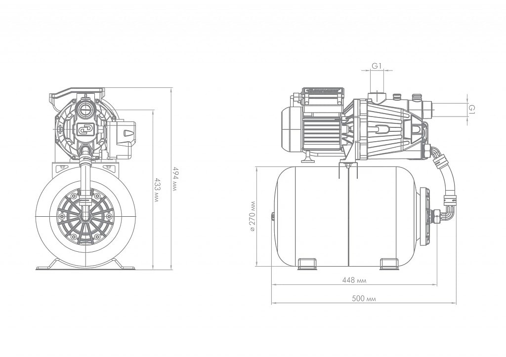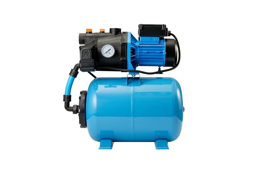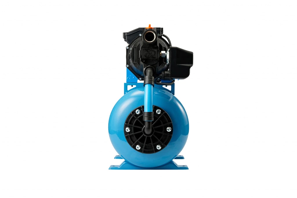 Насосная станция "ДЖАМБО" создана для автоматизированной подачи чистой воды из разных источников, также может быть использована для повышения давления при использовании в качестве источника магистрального водопровода.Область применения.Насосную станцию можно использовать как часть системы автоматического водоснабжения в частном доме. Забор воды может осуществляться из:открытых водоемов;колодцев и скважин;централизованного водопровода.Наличие заливного отверстия и отверстия для выхода воздуха с резьбововыми заглушками позволяет быстро заполнить водой насосную часть и избежать образование воздушных пробок, что облегчает первоначальный запуск насоса. В процессе залива вода сразу попадает в диффузор, корпус и всасывающую магистраль.Заменена соединительная арматура между насосом и гидроаккумулятором на шланг из сшитого полиэтилена с накидными гайками. Облегчает монтаж и замену гидроаккумулятора. Новая конструкция гидравлической части снижает риск возникновения воздушных пробок при работе.Наличие гидроаккумулятора позволяет защитить насос от частых пусков, тем самым увеличивая его срок службы. Он же позволяет поддерживать давление в системе, что обеспечивает бесперебойное водоснабжение потребителей в тот момент, когда насос отключается. Кроме поддержания давления в системе водоснабжения гидроаккумулятор позволяет предотвратить гидроудар.Встроенная тепловая защита. Функцию защиты от перегрева выполняет термопротектор, находящийся в обмотках статора. Как только температура обмоток повышается - электродвигатель отключается.
