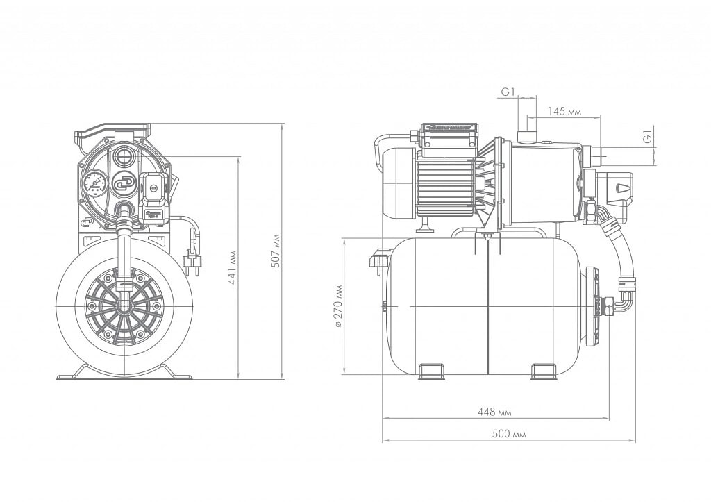 Высокое давление на выходе и хорошие условия всасывания на входе обеспечены, благодаря встроенному внутреннему эжектору с системой труб Вентури.