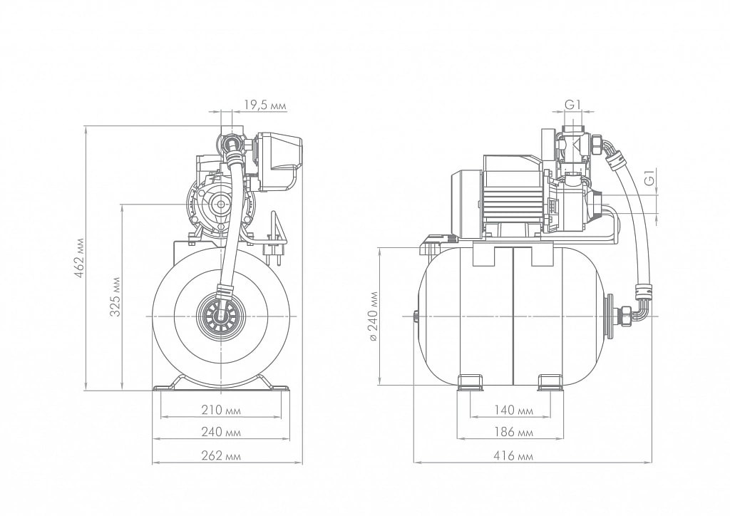 Корпус насоса-автомата изготовлен из чугуна, рабочее колесо — из латуни. Корпус гидроаккумулятора изготовлен из углеродистой стали.