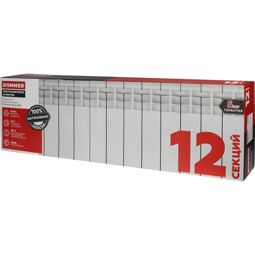 Радиатор алюминиевый Rommer Plus 200 12 секций RAL9016