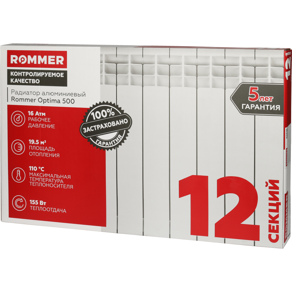 Радиаторы алюминиевые ROMMER Optima 500 производятся на современном предприятии метод литья под давлением. Для дополнительной защиты от коррозии на внутренние и наружные поверхности наносится фтор-циркониевый слой и оксидная пленка.