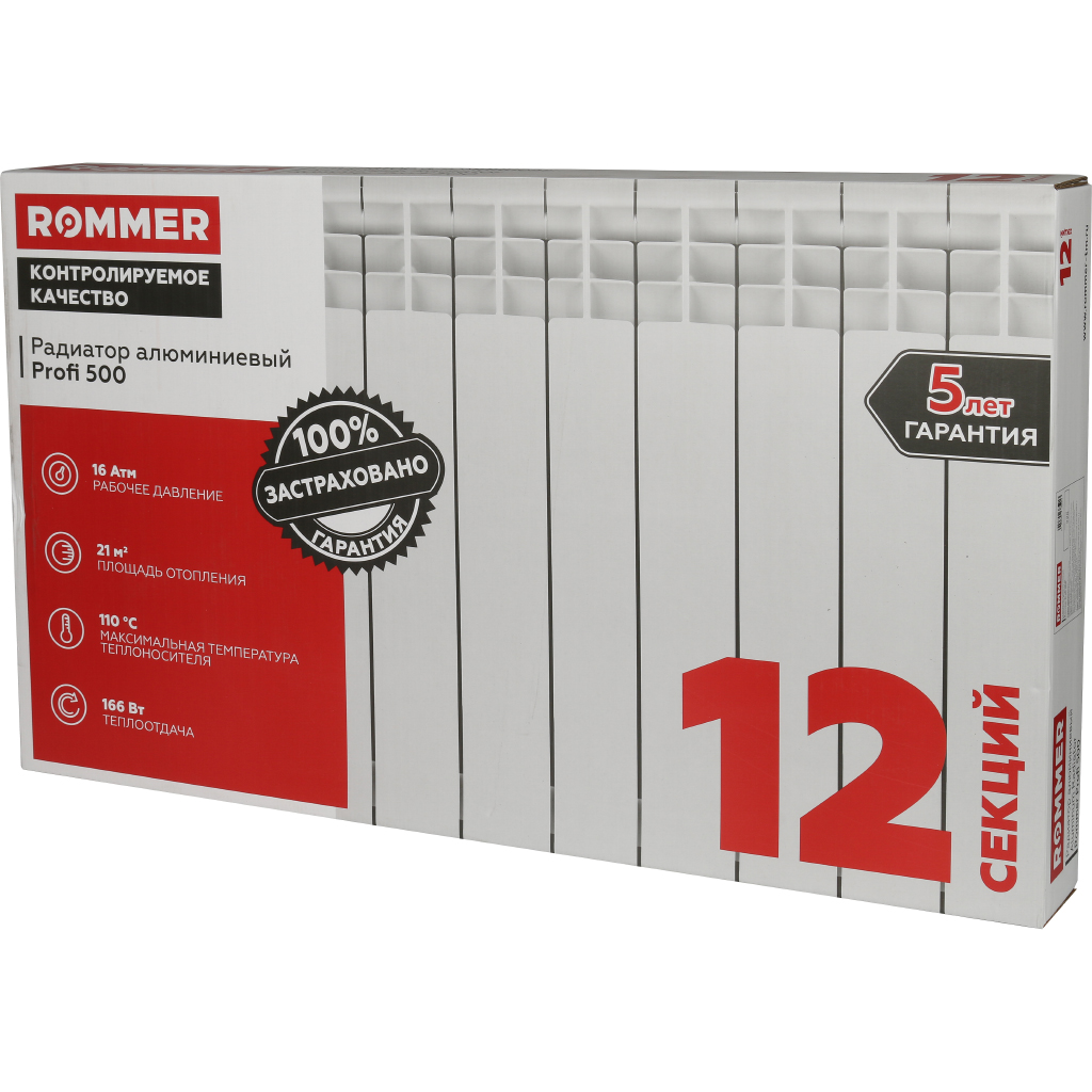 Радиатор алюминиевый Rommer Profi 500 12 секций RAL9016