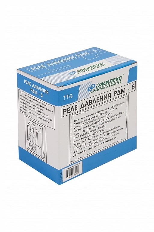 Для работы реле давления РДМ 5 не требуется первоначальная настройка, так как настройки заданы производителем. Включение — 1,4 бар. Выключение — 2,8 бар.