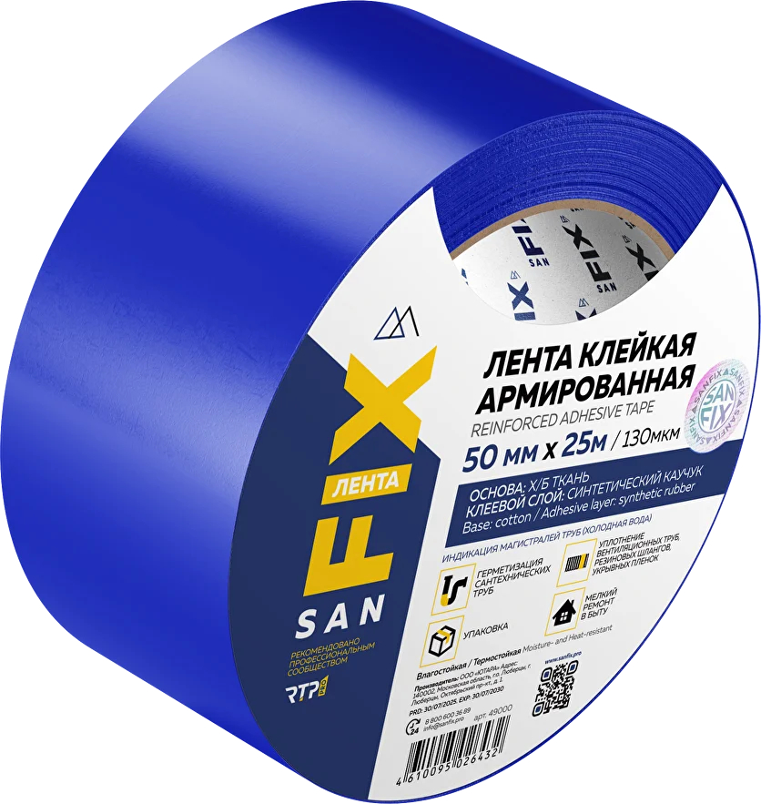 Скотч 50 мм х 25 м, синий SANFIX