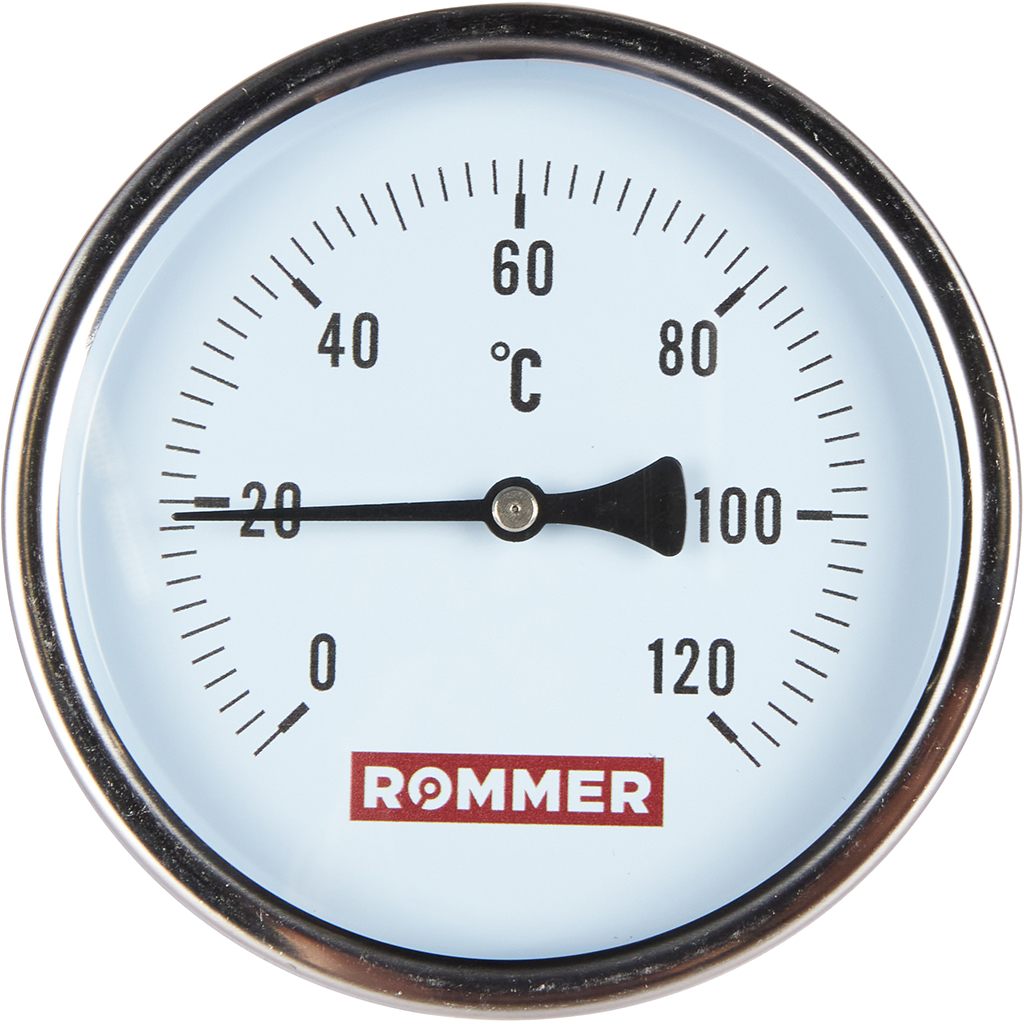 Термометр бим. 1/2" Ду100 120С с погружной гильзой 75мм ROMMER