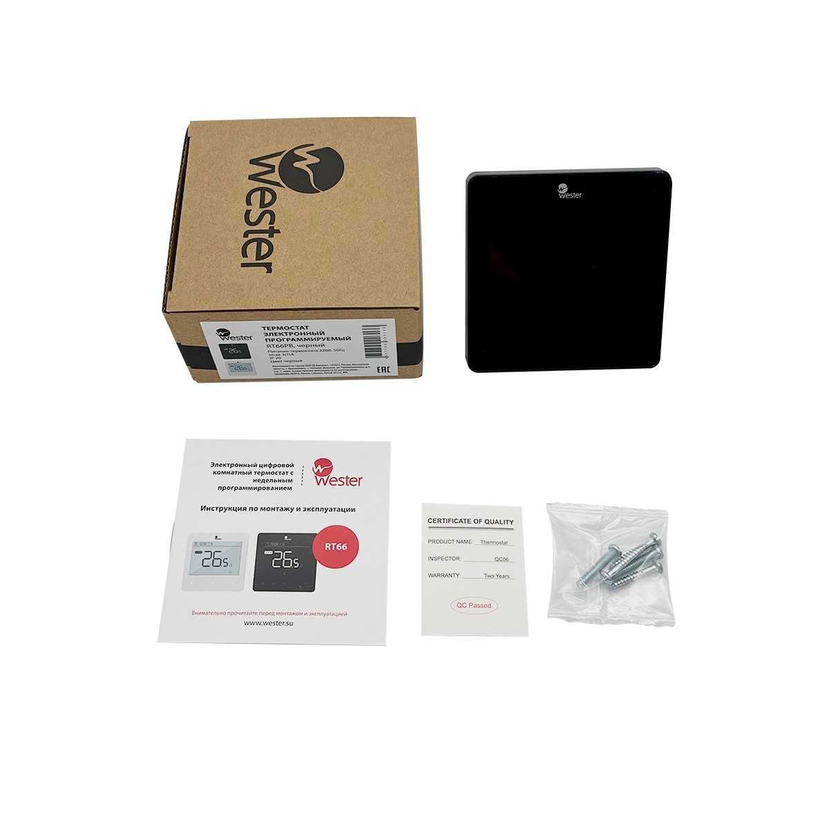 Термостат комнатный RT66PB (черный) сенсорный с ЖК дисплеем Wester