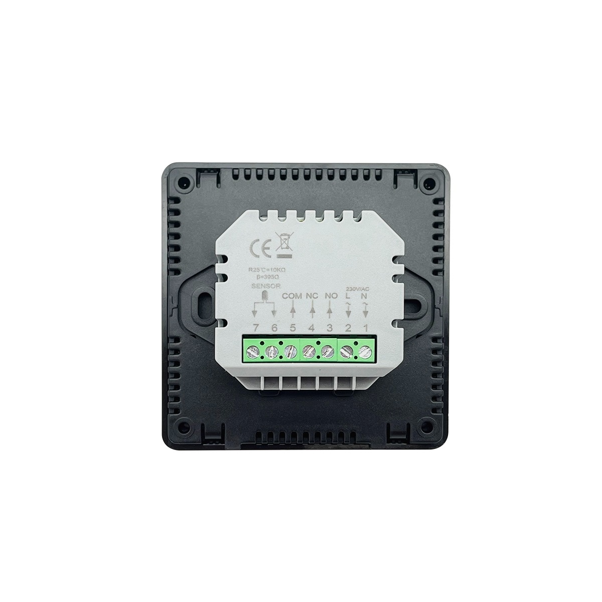 Электронный цифровой комнатный термостат предназначен для поддержания заданной температуры в помещении путем управления оборудованием или отдельными элементами климатических систем. - ЖК-дисплей с хорошо читаемой информацией при фоновом освещении; - Регулирующая рукоятка упрощает использование, нажмите кнопку, чтобы включить / выключить термостат, поверните влево/ вправо, чтобы отрегулировать значения; - Функция проветривания; - На дисплее отображается фактическая и заданная температуры; - Энергонезависимая память: EEPROM - Максимальная резистивная нагрузка: 0,5 А - Контакты реле: NO и NC - Диапазон регулирование температуры: 5 - 35 °C, с шагом 0,5 °C Датчик: NTC 10кОм - Температура окружающей среды: 0 - 50 °C - Максимальная влажность: 85% - Размеры термостата: для настенного монтажа, 135 мм x 87,5 мм x 23,2 мм