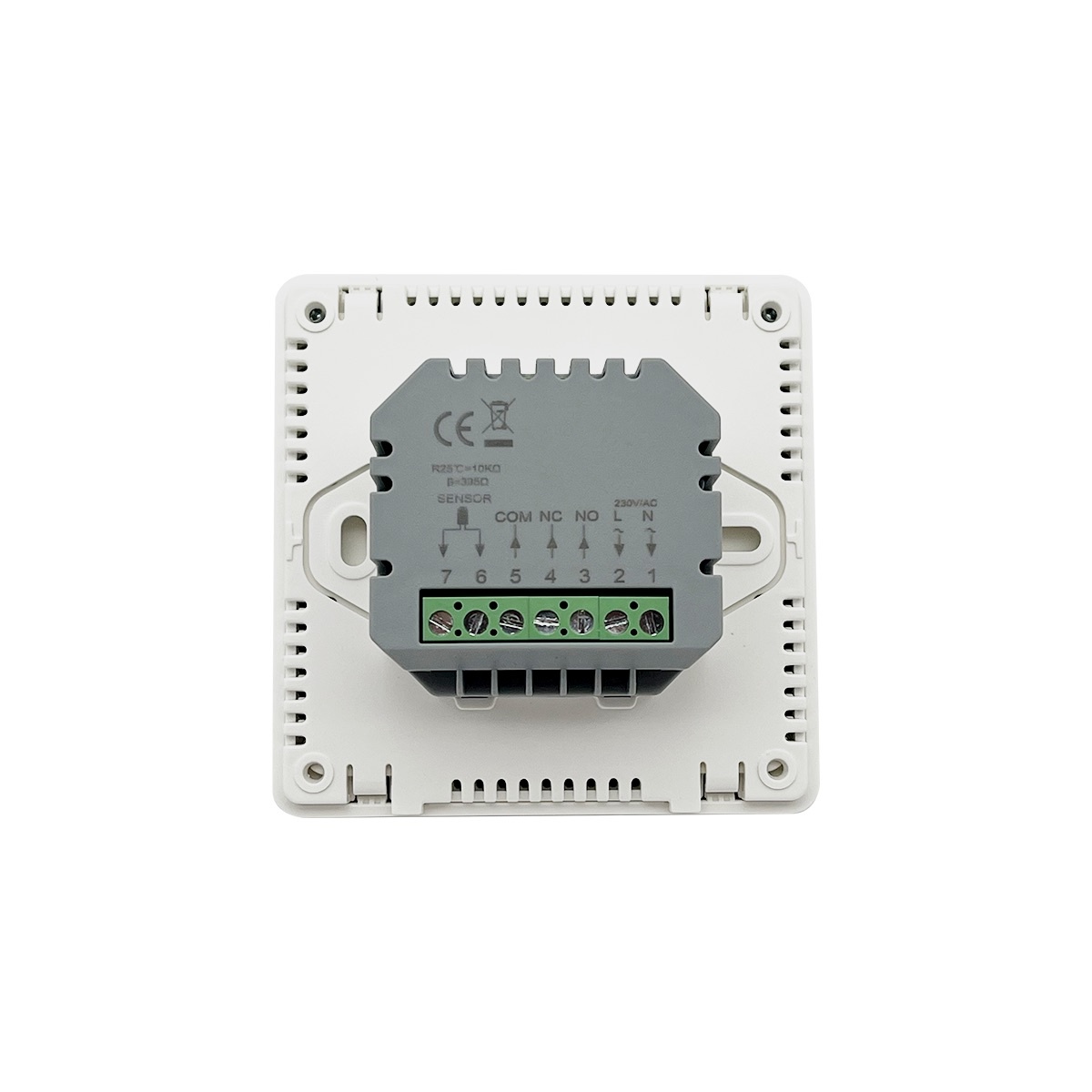 Электронный цифровой комнатный термостат предназначен для поддержания заданной температуры в помещении путем управления оборудованием или отдельными элементами климатических систем. - ЖК-дисплей с хорошо читаемой информацией при фоновом освещении; - Регулирующая рукоятка упрощает использование, нажмите кнопку, чтобы включить / выключить термостат, поверните влево/ вправо, чтобы отрегулировать значения; - Функция проветривания; - На дисплее отображается фактическая и заданная температуры; - Энергонезависимая память: EEPROM - Максимальная резистивная нагрузка: 0,5 А - Контакты реле: NO и NC - Диапазон регулирование температуры: 5 - 35 °C, с шагом 0,5 °C Датчик: NTC 10кОм - Температура окружающей среды: 0 - 50 °C - Максимальная влажность: 85% - Размеры термостата: для настенного монтажа, 135 мм x 87,5 мм x 23,2 мм